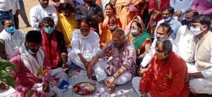 मुख्यमंत्री शिवराज सिंह चौहान और राज्यसभा सांसद ज्योतिरादित्य सिंधिया ने मुंगावली और पोहरी में आज सोमवार 5 अप्रैल को प्रस्तावित नल जल योजना शुभारम्भ का सरकारी कार्यक्रम पिछले दिनों इसलिए रद्द कर दिया कि वहां भीड़ जुटेगी और संक्रमण का खतरा बढ़ेगा लेकिन ग्वालियर (Gwalior) के भाजपा नेताओं ने इससे कोई सीख नहीं ली। सोशल मीडिया पर ग्वालियर पूर्व विधानसभा क्षेत्र में स्थित थाटीपुर अस्पताल में आयोजित एक भूमिपूजन कार्यक्रम की कुछ तस्वीरें और वीडियो वायरल हुए हैं जिसमें ग्वालियर (Gwalior) के भाजपा सांसद विवेक नारायण शेजवलकर, भाजपा जिला अध्यक्ष कमल माखीजानी, पूर्व विधायक भाजपा नेता मुन्नालाल गोयल सहित कई पदाधिकारी, कार्यकर्ता भीड़ के साथ मौजूद हैं इनके बीच न तो सोशल डिस्टेंसिंग है और बहुत से लोग तो मास्क भी नहीं लगाएलेकिन इस सबसे बेफिक्र नेताजी कोरोना के खतरे के बीच भूमिपूजन कार्यक्रम में व्यस्त हैं।
