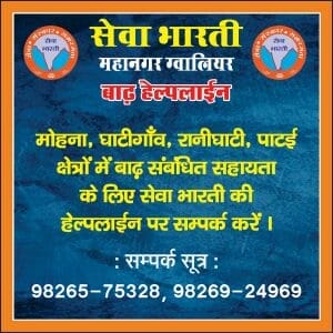 सामाजिक संस्था सेवा भारती ग्वालियर ने अपील कर कहा है कि बाढ़ के कारण वहाँ के लोग रानीघाटी गौशाला में आ रहे है। अभी लगभग 1000 लोग गौशाला व आसपास के गांवों में अस्थायी रूप से रह रहे हैं ।आप सभी से अनुरोध है कि 0-16 वर्ष आयु के बच्चों के नए,पुराने कपड़े (अभी के ठंडे मौसम के हिसाब से) राष्ट्रोत्थान न्यास भवन, माधव कॉलेज के सामने, नई सड़क, ग्वालियर पर पहुंचाने का प्रयास करें। कृपया सुनिश्चित करें कि वस्त्र पहने जाने लायक अच्छी स्थिति में हों।