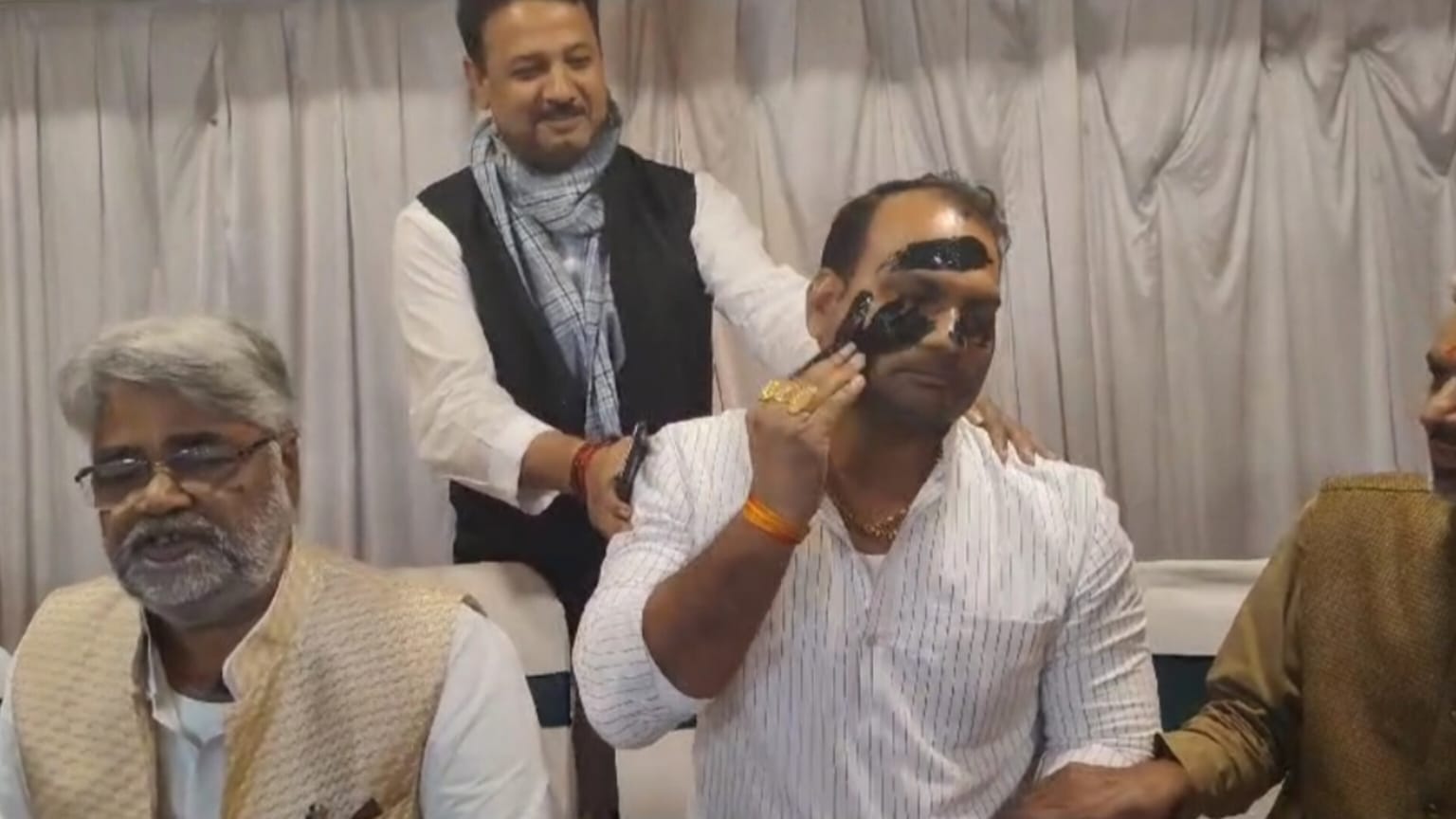 प्रेस कांफ्रेंस के दौरान युवा नेता ने अपना मुंह काला किया