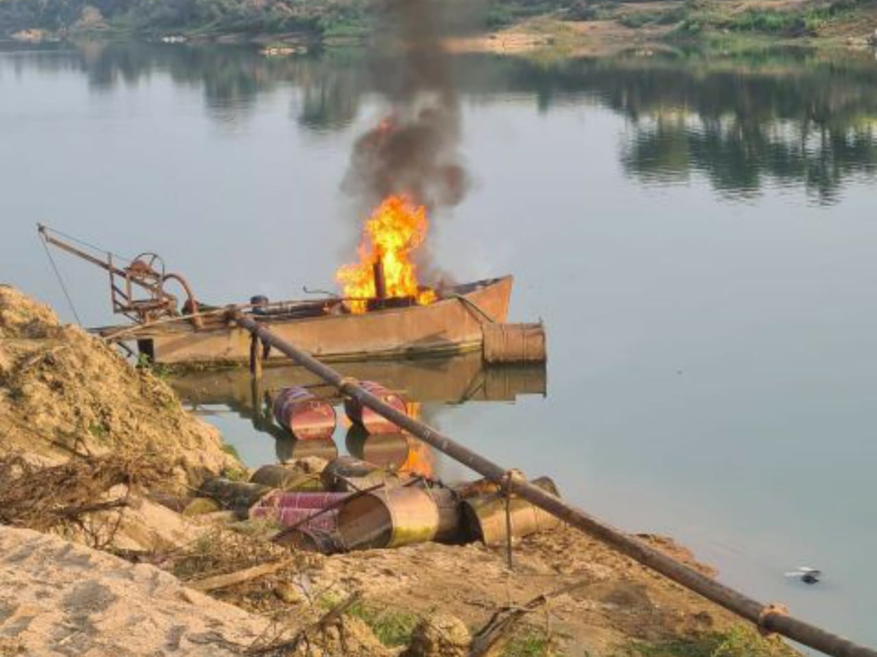 प्रशासन की टीम ने घाट पर मौजूद पनडुब्बियों को जब्त कर उसमें भरे डीजल पेट्रोल से उसमें आग लगाकर उसे नष्ट कर दिया।