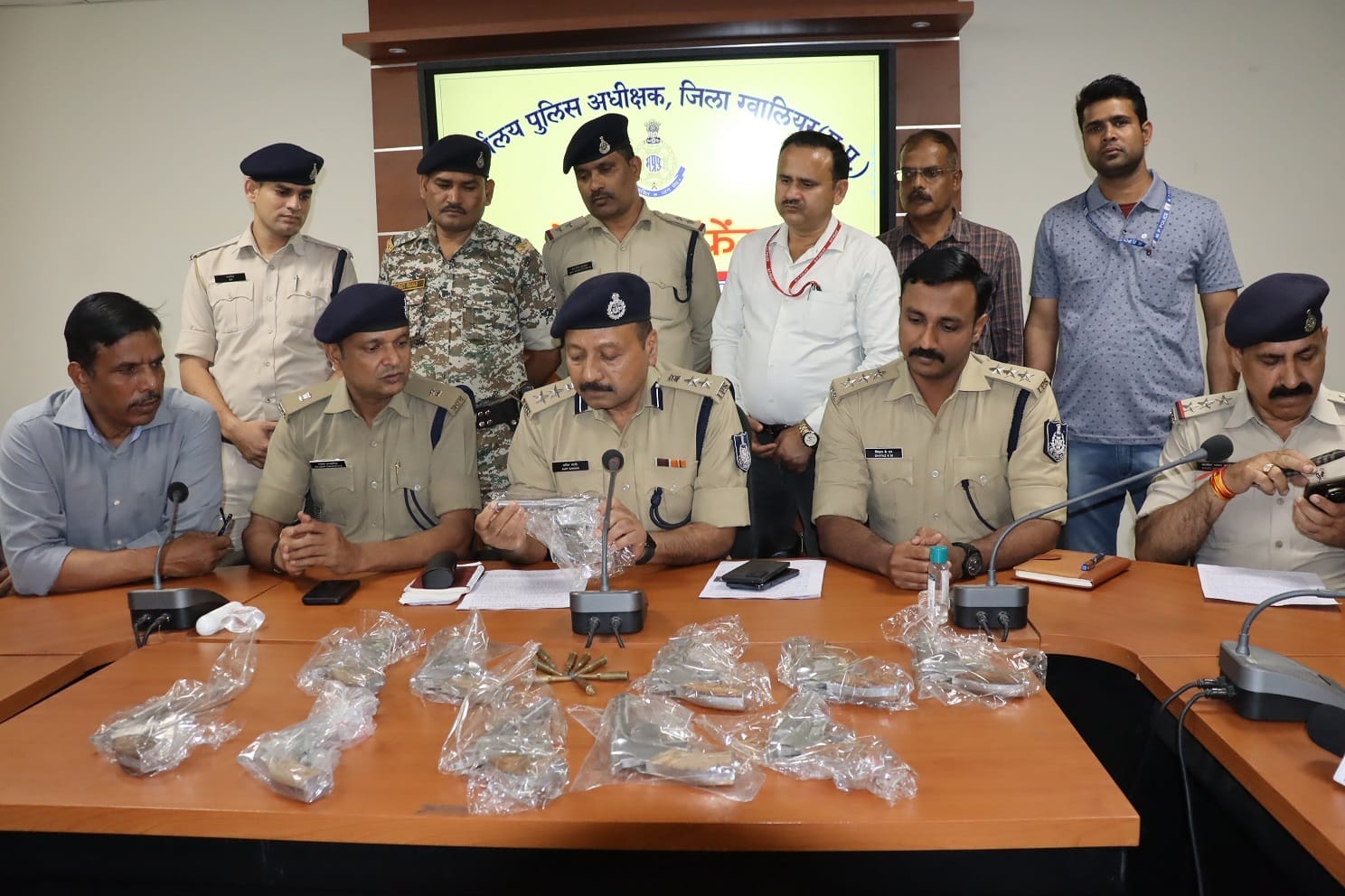 पुलिस अधीक्षक अमित सांघी ने पत्रकारों को जानकारी देते हुए बताया कि उन्हें मुखबिर से सूचना मिली कि मुरार थाना क्षेत्र में लाल टिपारा गौशाला के पास मोटर साइकिल पर एक संदिग्ध व्यक्ति पिट्ठू बैग में अवैध हथियार लेकर उन्हें बेचने की फिराक में खड़ा है। उक्त सूचना के बाद पुलिस अधीक्षक ने तत्काल एडिशनल एसपी क्राइम राजेश दण्डोतिया को क्राइम ब्रांच की टीम भेजकर मुखबिर सूचना की तस्दीक कराकर कार्यवाही के निर्देश दिए।