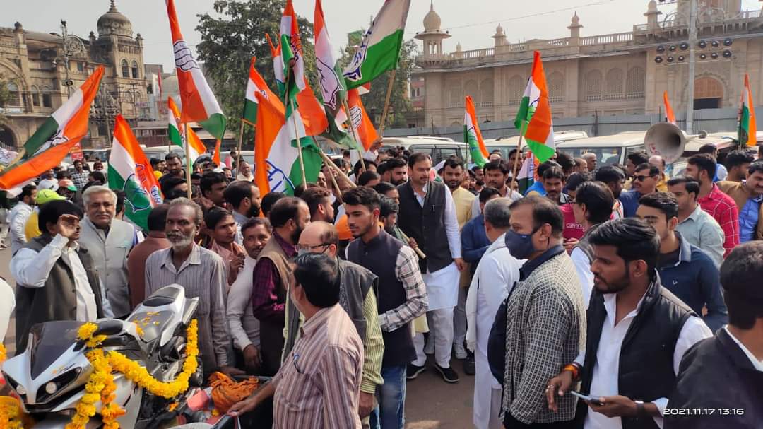 देश भर में बढ़ती महंगाई का विरोध करते हुए आम जनता में जनजागृति बढ़ाने के लिए ग्वालियर दक्षिण विधानसभा क्षेत्र के कांग्रेस कार्यकर्ताओं ने विशाल जन जागरण पदयात्रा का आयोजन किया। इस अनोखी जन जागरण पदयात्रा में कांग्रेसजनों ने ठेले पर सांकेतिक रूप से बाइक, रसोई गैस सिलेंडर, पेट्रोल, सरसों का तेल रखकर इनकी अर्थी सजाई और अर्थी के आगे आगे मातमी धुन बजाते हुए बैंड बाजे के साथ जन जागरण पदयात्रा विक्टोरिया मार्केट महाराज बाड़े से प्रारंभ होकर सराफा बाजार, गस्त का ताजिया, राम मंदिर, दौलतगंज होते हुए पुनः महाराज बाड़े पर आकर समाप्त हुई ।