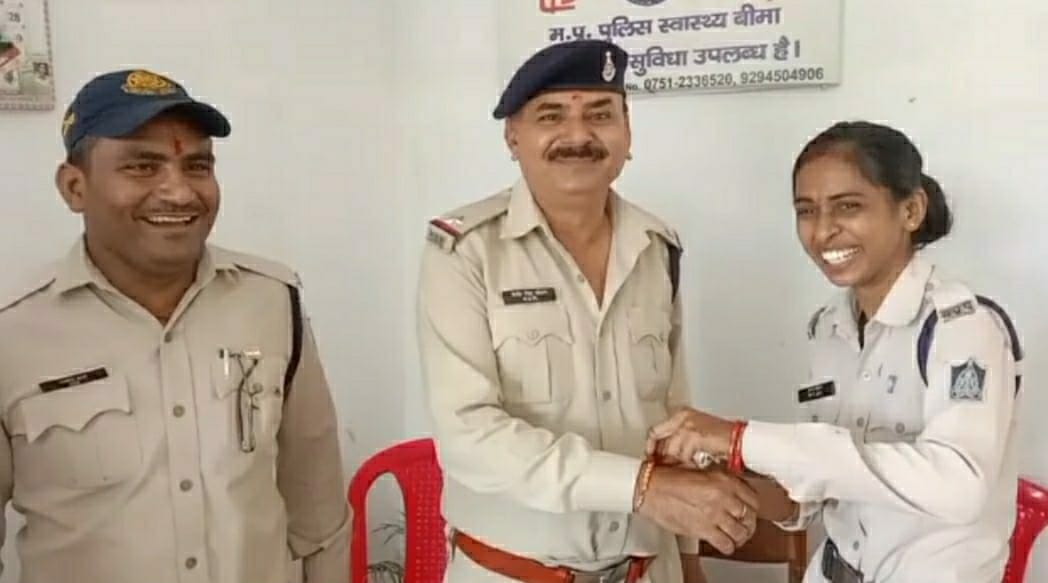 ग्वालियर के हजीरा थाने (Gwalior Police) का दृश्य आज रक्षाबंधन पर बदला बदला था। सुबह से ही ड्यूटी पर तैनात स्टाफ थाने पर पहुँच गया लेकिन उनकी कलाइयाँ सूनी थी। थाने पर मौजूद महिला कांस्टेबल सपना चौहान मे जब सबकी कलाइयाँ सूनी और चेहरे पर मायूसी देखी तो उसने सबको राखी बांधने का फैसला किया।कांस्टेबल सपना चौहान ने बाजार से राखियाँ और मिठाई मंगवाई और फिर सभी भाईयों के माथे पर तिलक कर उनकी कलाई पर राखी बांधी।