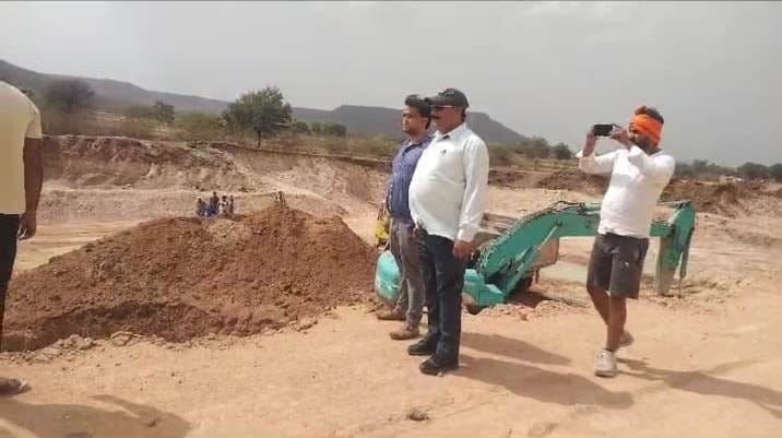 कृत्रिम रेत बना रही एक पोकलेन मशीन और तीन डम्पर जब्त