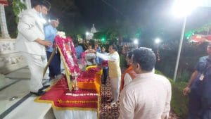 केंद्रीय मंत्री ज्योतिरादित्य सिंधिया अपनी धर्मपत्नी श्रीमती प्रियदर्शनी राजे सिंधिया, बहन श्रीमती चित्रांग्दा राजे एवं पुत्र महाआर्यमन सिंधिया के साथ छत्री परिसर में स्व. माधवराव सिंधिया एवं अपनी दादी राजमाता स्व. विजयाराजे सिंधिया की प्रतिमा पर पुष्पांजलि अर्पित कर उन्हें नमन किया।