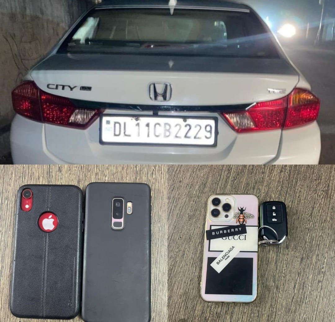 वरिष्ठ अधिकारियों के निर्देश पर पुलिस की संयुक्त टीम मुखबिर के बताये स्थान सिंचाई कालोनी के पास पहुंची। पुलिस टीम ने मुखबिर के बताये स्थान पर पहुंचकर होंडा सिटी कार की तलाश की, पुलिस को एक कार अजाक्स कार्यालय के पास खड़ी दिखी, जिसके पास जाकर देखा तो उसमें दो व्यक्ति मोबाइल चलाते हुए दिखे।