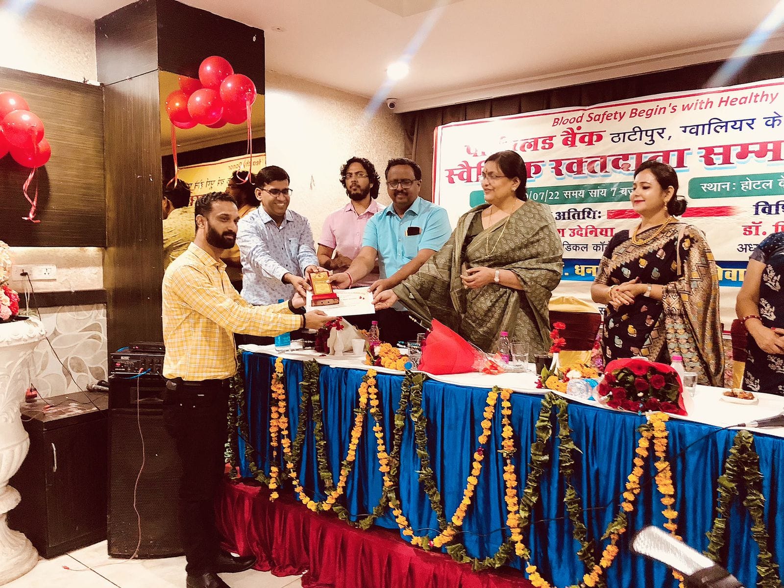 ग्वालियर, डेस्क रिपोर्ट। ग्वालियर (Gwalior) शहर में पहली बार पार्थ ब्लड बैंक थाटीपुर (Gwalior Partha Blood Bank) द्वारा स्वेच्छिक रक्तदाता सम्मान समारोह (Voluntary Blood Donor Award Ceremony) का आयोजन किया गया। इस समारोह में 100 से अधिक ऐसे रक्तदाताओं का सम्मान किया, जो समय समय पर जरूरतमंद लोगों के लिए ब्लड और प्लेटलेट्स डोनेट करते हैं। इस आयोजन के मुख्य अतिथि के रूप में डॉ दिनेश उदेनिया डीन मेडिकल कॉलेज और विशिष्ट अतिथि डॉ प्रियवंदा भसीन अध्यक्ष IMA ग्वालियर उपस्थित रहे। रक्तदाताओं के साथ शहर के उन सभी ब्लड कोऑर्डिनेटर का भी सम्मान किया गया, जो जरूरत पड़ने पर मरीज की ब्लड की व्यवस्था करवाने में मदद करते हैं।