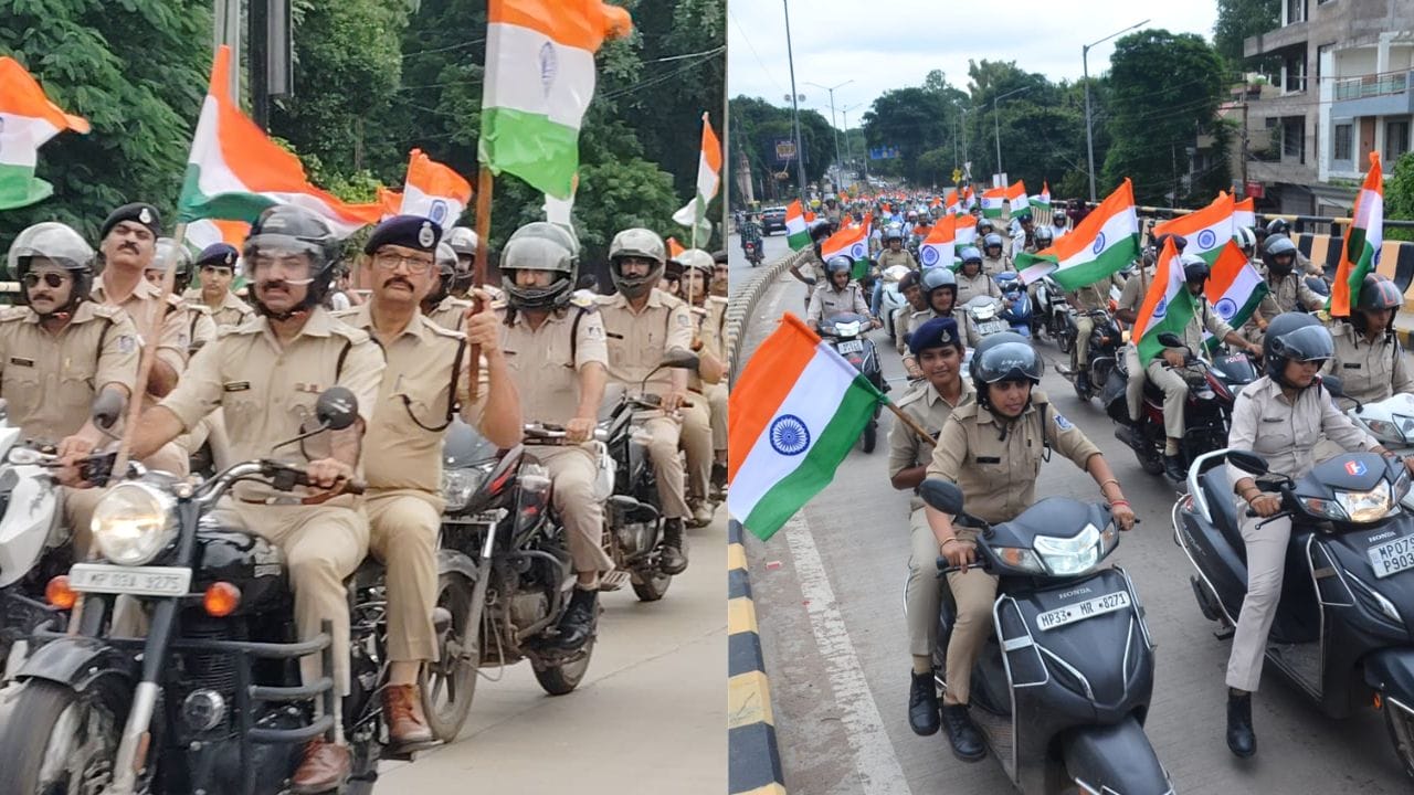 Gwalior Police Tiranga Bike Rally: हर घर तिरंगा अभियान के तहत मध्य प्रदेश में इस समय तिरंगा यात्रा, तिरंगा बाइक रैलियां निकाली जा रही है इसी क्रम में आज ग्वालियर पुलिस ने एक आकर्षक और अनुशासित बाइक रैली निकाली, आईजी पुलिस अरविंद सक्सेना ने एसपी ऑफिस से शुरू हुई पुलिस तिरंगा बाइक रैली को हरी झंडी दिखाकर रवाना किया।