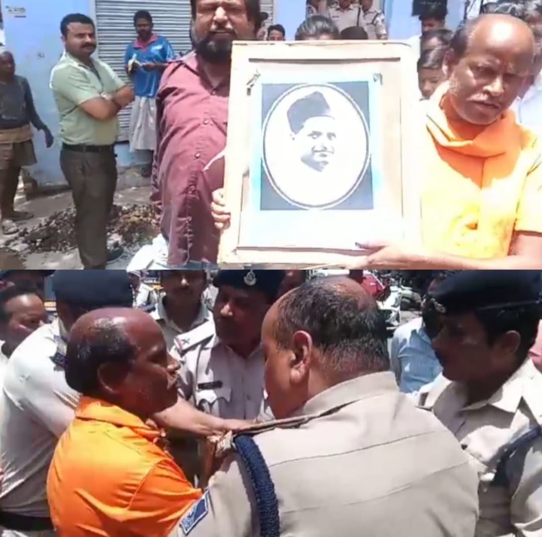 हिन्दू महासभा का कार्यक्रम था कि गरीबों में फल का वितरण किया जाये और गोडसे की जयंती धूमधाम से मनाई जाये, हिन्दू महासभा कार्यकर्ता नाथूराम गोडसे की तस्वीर लेकर सड़क पर जैसे ही निकले, सूचना मिलते ही पुलिस मौके पर पहुँच गई गोडसे की तस्वीर को अपने कब्जे में लेने की कोशिश की।