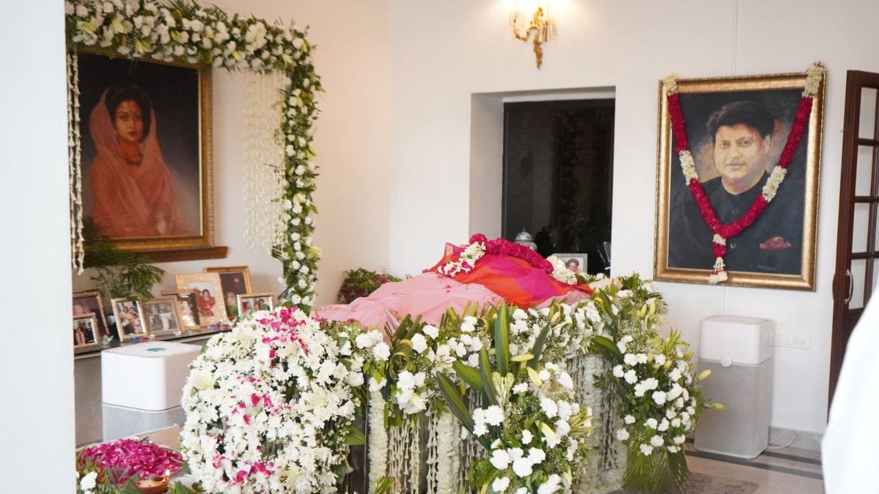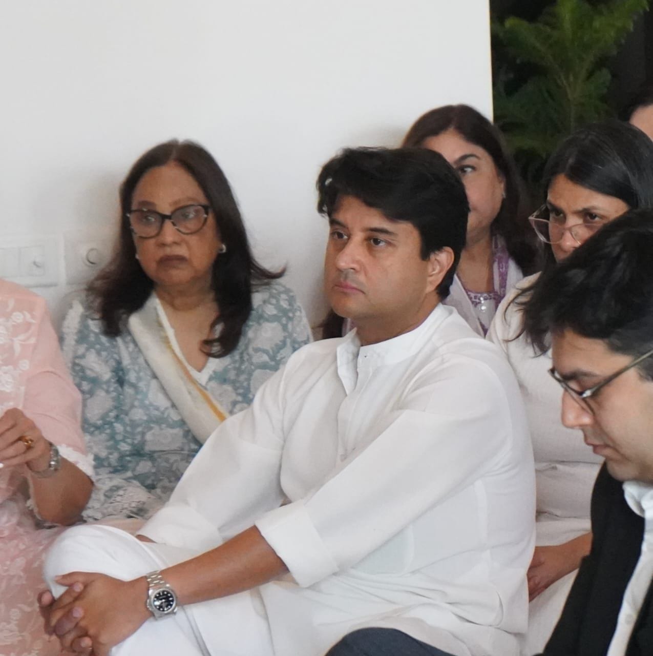 दिल्ली स्थित सिंधिया के सरकारी आवास पर अंतिम दर्शनार्थ रखी पार्थिव देह
