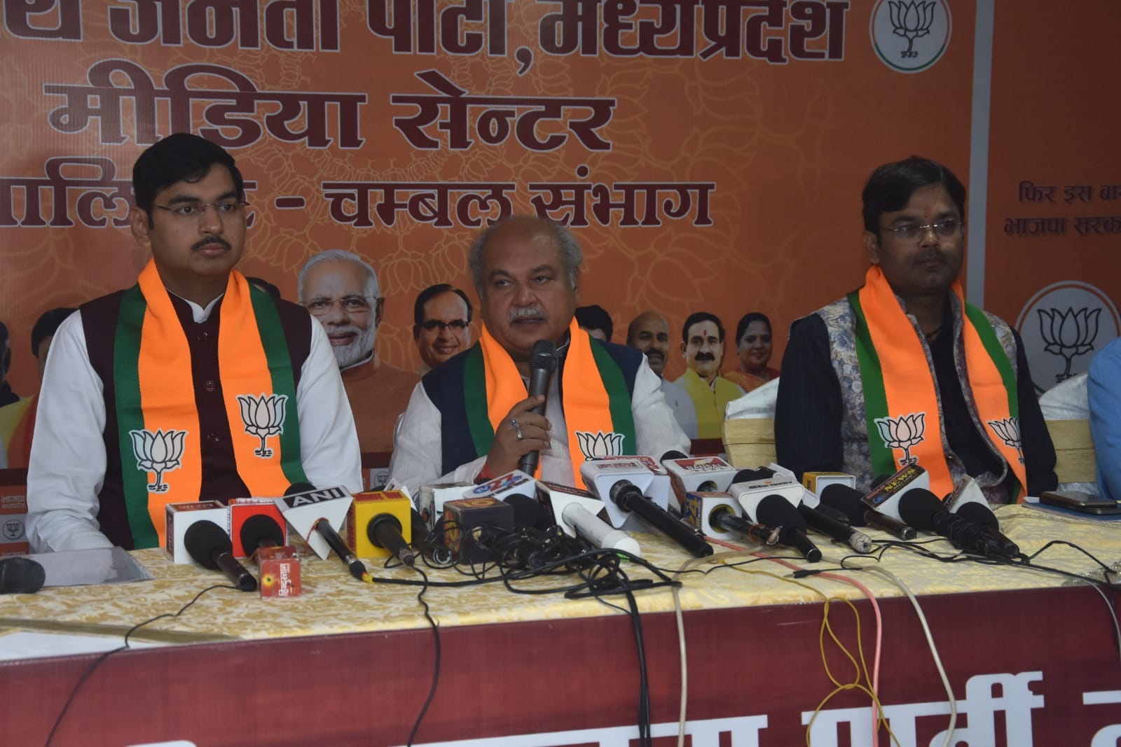 MP Election 2023 : मध्य प्रदेश चुनाव प्रबंधन समिति के संयोजक, केंद्रीय मंत्री नरेंद्र सिंह ने आज सोमवार को ग्वालियर में संभागीय मीडिया सेंटर पर मीडिया को संबोधित करते हुए भाजपा के संकल्प पत्र के 10 प्रमुख संकल्प दोहराए, उन्होंने कहा कि बीस साल पहले मध्यप्रदेश कहां था, यह आज की युवा पीढ़ी को पता नहीं है। पिछले 20 सालों में भारतीय जनता पार्टी की सरकार ने अपने काम से एक बीमारू राज्य को विकास के पथ पर आगे बढ़ाया है। उन्होंने इस संकल्प पत्र को तैयार करने के पीछे की मेहनत और उद्देश्य बताये ।