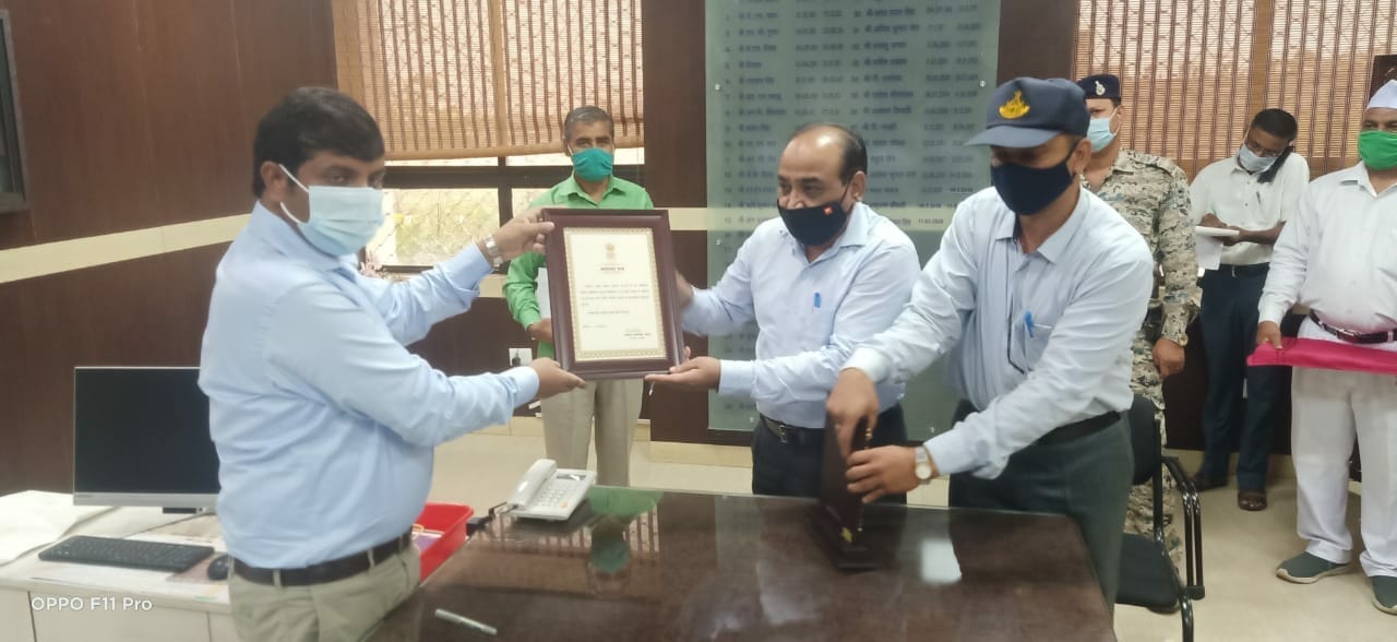 जिला सैनिक कल्याण अधिकारी कर्नल नरेन्द्र सिंह तोमर ने प्रदेश के राज्यपाल (MP Governor) की ओर से ग्वालियर कलेक्टर को प्रदान किया गया प्रशस्ति पत्र सोमवार को उनके कक्ष में भेंट किया। यह प्रशस्ति पत्र वर्ष 2018-19 में लक्ष्य से अधिक 15 लाख 6 हजार 940 रुपये एकत्रित करने के उपलक्ष्य में प्रदान किया गया है।
