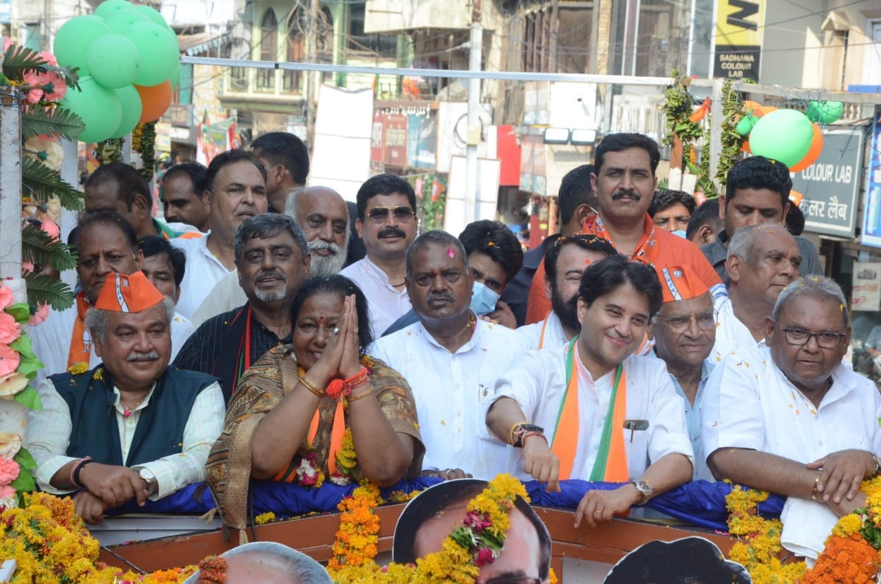 ग्वालियर, अतुल सक्सेना। मप्र नगरीय निकाय चुनाव (MP Urban Body Election 2022) के पहले चरण का शोरगुल थमने से पूर्व भाजपा (BJP) ने अपनी पूरी ताकत झोंक दी। मुख्यमंत्री शिवराज सिंह चौहान जहाँ कल रविवार को देर रात रोड शो करके गए वहीं केंद्रीय मंत्री ज्योतिरादित्य सिंधिया (Jyotiraditya Scindia) और नरेंद्र सिंह तोमर (Narendra Singh Tomar) ने भी पिछले दो दिनों में लगातार बैठकें और रोड शो किये। चुनाव प्रचार थमने से पहले भाजपा (Gwalior BJP) के सभी बड़े नेताओं ने महापौर प्रत्याशी सुमन शर्मा को साथ लेकर पूरे शहर में रोड शो किया और पार्षद प्रत्याशियों के लिए वोट मांगे।