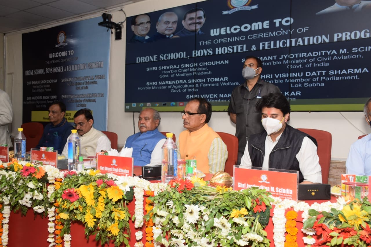मुख्यमंत्री शिवराज सिंह चौहान ने एमआईटीएस मैदान में रिमोट के जरिए ड्रोन उड़ाकर प्रदेश के पहले ड्रोन स्कूल का शुभारंभ किया। इस अवसर पर केन्द्रीय मंत्री नरेन्द्र सिंह तोमर व ज्योतिरादित्य सिंधिया, भाजपा के प्रदेश अध्यक्ष वी डी शर्मा, प्रदेश सरकार की मंत्री श्रीमती यशोधरा राजे सिंधिया, तुलसीराम सिलावट, गोविंद सिंह राजपूत, डॉ. प्रभुराम चौधरी तथा सांसद विवेक नारायण शेजवलकर सहित राज्य सरकार के अन्य मंत्रिगण मौजूद थे।