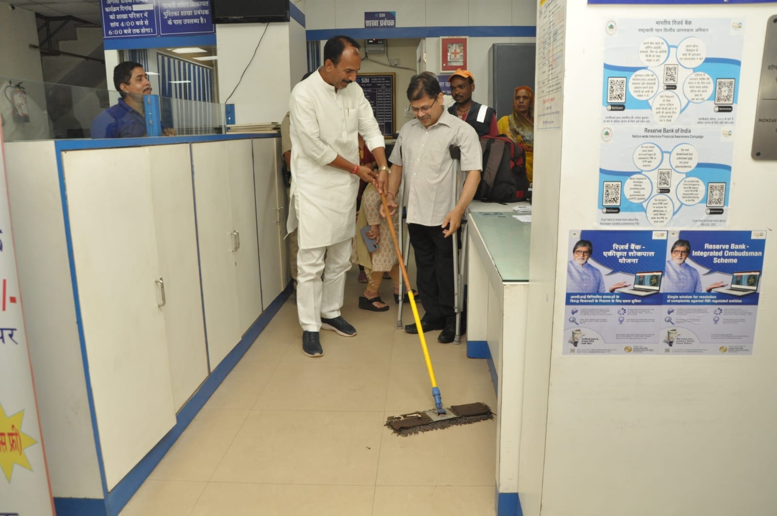 बैंक प्रबंधन का रवैया देखकर सभापति श्री तोमर, अपर आयुक्त एवं उपायुक्त सहित हितग्रहियों ने कहा कि जब तक चैक नहीं मिल जाते तब तक वह बैंक में ही बैठे रहेंगे, इसी दौरान सभापति और अपर आयुक्त को बैंक में गंदगी दिखाई दी तो उन्होंने बैंक में पोछा लगाकर गांधीगिरी दिखाई और स्वच्छता का संदेश दिया।