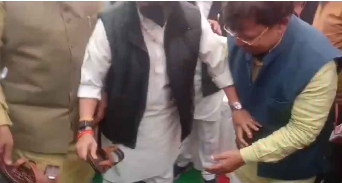 ऊर्जा मंत्री प्रद्युम्न सिंह तोमर को पहनाई चप्पल