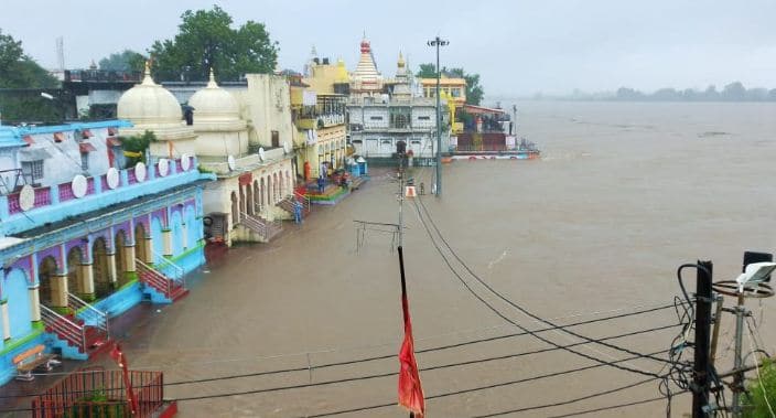 भारी बारिश की वजह से नर्मदा का जलस्तर खतरे के निशान को पार कर गया है| बिगड़ते हालात को देखते हुआ प्रशासन की तरफ से सेना की यूनिट भी बुला ली गई है| होशंगाबाद के काले महादेव मंदिर तक नर्मदा नदी का पानी पहुंच गया है। यह मंदिर सेठानी घाट से ऊपर स्थित है, उधर पुलिस ने सेठानी घाट जाने पर रोक लगा दी है। वहीं तवा नदी भी उफान पर। नदी में पानी पुल के ऊपर बह रहा है। तवा डैम से छोड़े गए पानी की वजह से यह हालात बने हैं।