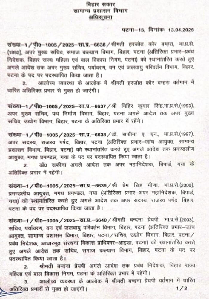 बिहार आईएएस अफसर तबादले