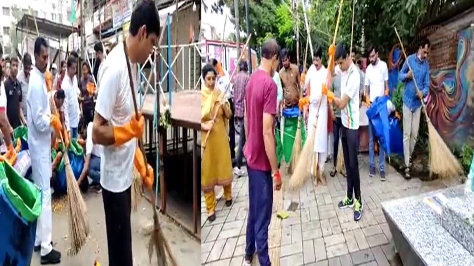 महापौर पुष्यमित्र भार्गव ने झाड़ू लेकर इंदौर की सफाई की –