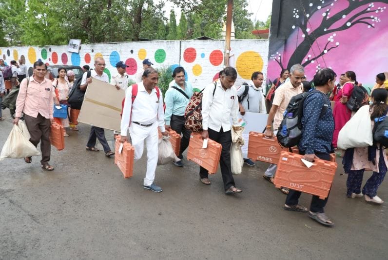 इंदौर कलेक्टर मनीष सिंह ने बताया कि 10 हजार से अधिक कर्मचारी चुनावी ड्यूटी में लगाए गए हैं। नगर निगम क्षेत्र में 2250 मतदान दल बनाए गए, जो अपनी-अपनी सामग्रियों को लेकर बसों में बैठकर मतदान केन्द्रों की ओर रवाना हुए। इन दलों को ले जाने-लाने के लिए 412 बसों की व्यवस्थाएं की गई। इलेक्ट्रॉनिक वोटिंग मशीनों जिसमें बैलेट यूनिट तथा कंट्रोल यूनिट शामिल है, के साथ-साथ अमिट स्याही सहित अन्य सामग्री वितरित की गई। स्टेडियम के अंदर इन सामग्रियों को टैबलों तक पहुंचाने के लिए ठेलों के साथ-साथ पहली बार इलेक्ट्रिक वाहनों का भी उपयोग किया गया।