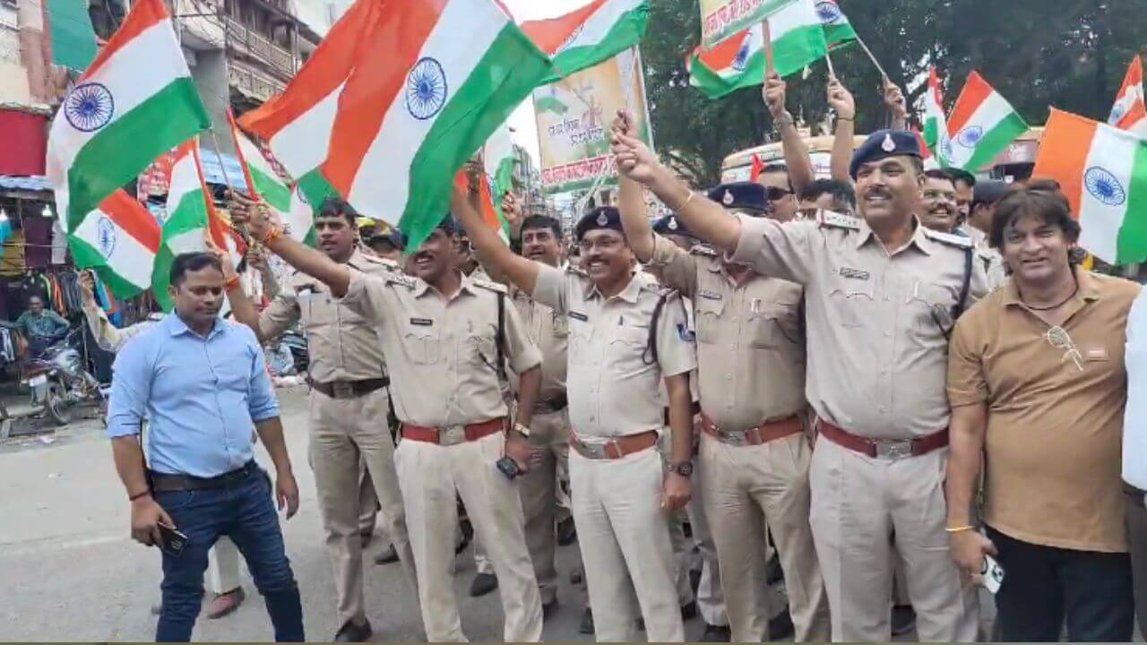 Indore News : इंदौर पुलिस द्वारा “हर घर तिरंगा अभियान की शुरुआत शहर के विभिन्न थाना क्षेत्रों में पुलिस ने हाथों में तिरंगा लेकर जनजागरूकता हेतु तिरंगा यात्रा निकाली गई। इसी कड़ी में चारों ज़ोन के डीसीपी के मार्गदर्शन में क्षेत्र के एडिश्नल डीसीपी व अनुभागों के एसीपी के नेतृत्व में थाना क्षेत्रों में थाना प्रभारियों व स्टाफ और नगर सुरक्षा समिति सदस्यों व गणमान्य नागरिकगणों के साथ पुलिस द्वारा हाथों में तिरंगा लेकर, जनजागरूकता हेतु तिरंगा यात्राएं निकाली जा रही हैं। जिसके अंतर्गत आज सहायक पुलिस आयुक्तगण कोतवाली, संयोगितागंज, हीरानगर के नेतृत्व में अनुभाग के थाना- कोतवाली, एमजी रोड़, तुकोगंज, संयोगितागंज, छोटी ग्वालटोली, पलासिया, हीरा नगर, बाणगंगा, थाना प्रभारियों तथा थाना चंदन नगर, थाना खजराना, थाना जूनी इंदौर के प्रभारियों व पुलिस बल द्वारा नगर सुरक्षा समिति सदस्यों के साथ लोगों में देशभक्ति की भावना जागृत करने एवं इस तिरंगा अभियान से ज्यादा से ज्यादा लोग जुड़ें इसके लिए जागरूकता रैली तिरंगा हाथों में लेकर पूरे जोश उत्साह के निकाली गई।