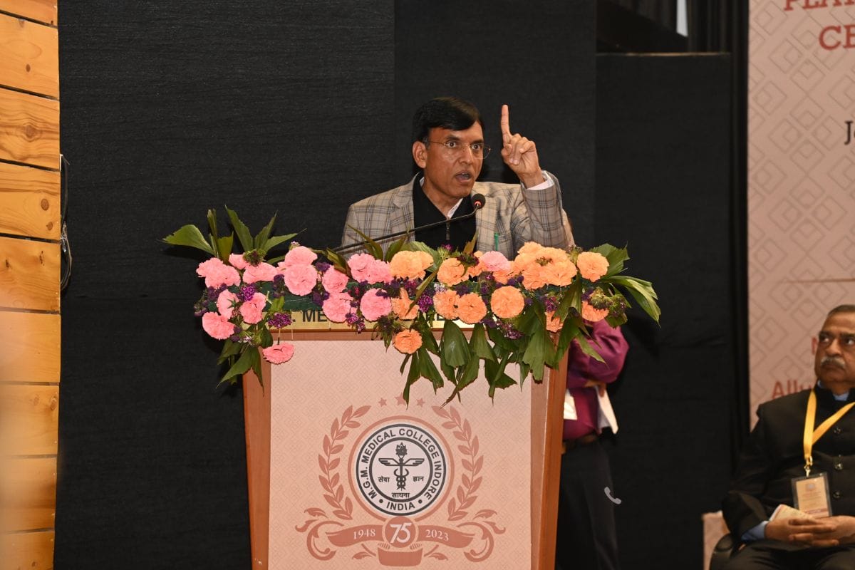 एमजीएम मेडिकल कॉलेज में अपने संबोधन में केंद्रीय स्वास्थ्य मंत्री मनसुख मांडविया ने कहा कि चिकित्सा के क्षेत्र में भारतीय चिकित्सकों का अभूतपूर्व योगदान रहा है और उन्होंने अपने कार्यों से देश का नाम रोशन किया है केंद्रीय मंत्री ने कोरोना काल में भारत के डॉक्टरों की सेवाओं की सराहना की उन्होंने कहा कि कोविड के समय डॉक्टरों ने अपनी जिम्मेदारी बखूबी निभाई उन्होंने सभी से आह्वान किया कि देश को विकसित राष्ट्र बनाने में हम सब अपना योगदान दें, हम सब जहां हैं वहां से देश की सेवा कर सकते हैं।