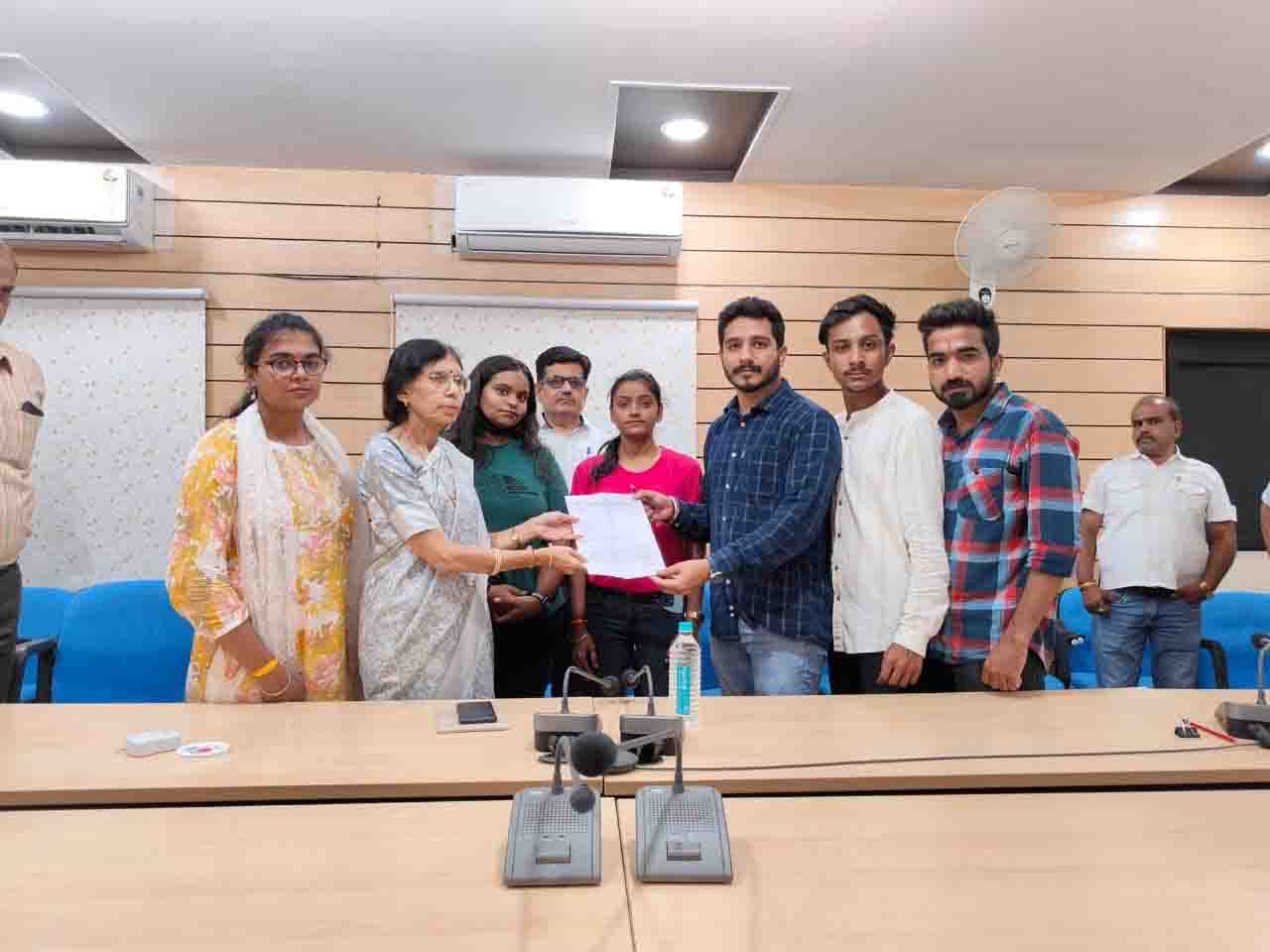 Indore News : इंदौर जिले में मंगलवार को अखिल भारतीय विद्यार्थी परिषद के द्वारा देवी अहिल्या विश्वविद्यालय की अध्यापिका का विद्यार्थियों के खिलाफ अनैतिक रवैये पर कुलपति महोदया को ज्ञापन सौंपा गया।