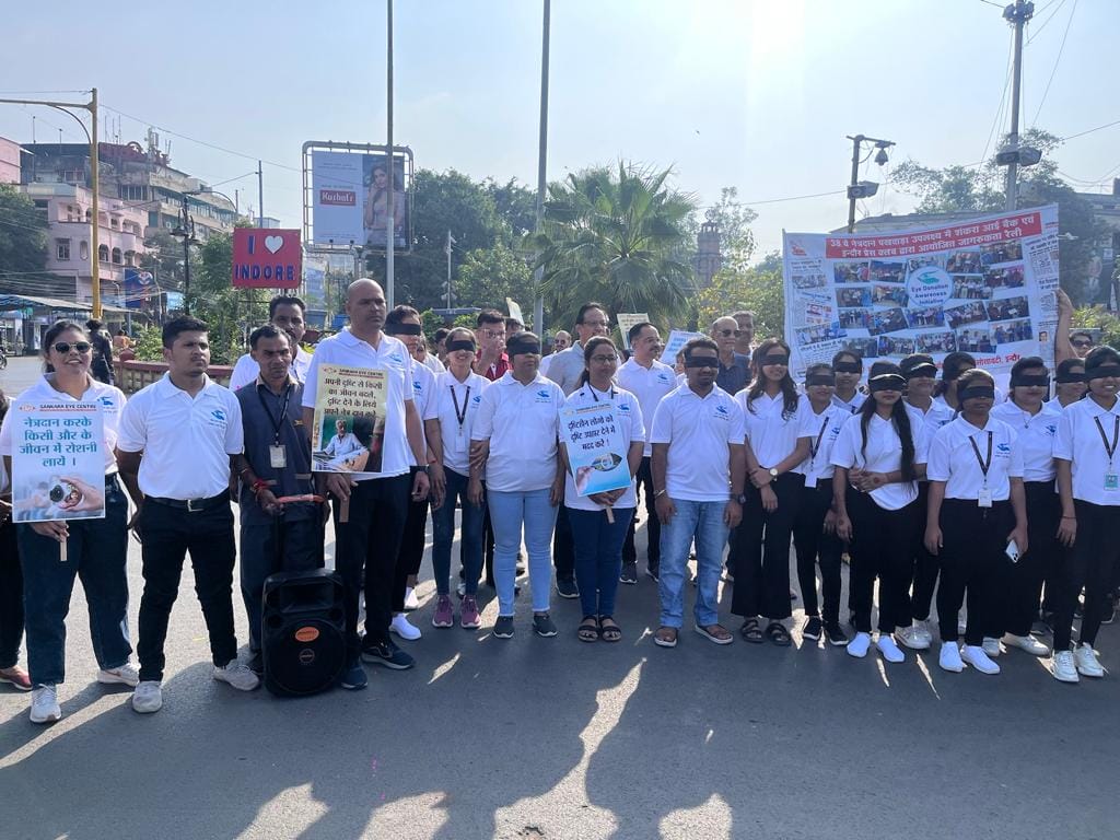 Indore News : कांची कामाकोटी मेडीकल ट्रस्ट द्वारा संचालित शंकरा आई सेंटर, इंदौर प्रेस क्लब और डिवीजनल ऑप्थल्मोलॉजी सोसायटी द्वारा 38वां राष्ट्रीय नेत्रदान पखवाड़े के अंतर्गत महात्मा गांधी प्रतिमा रीगल चौराहे से इंदौर प्रेस क्लब तक नेत्रदान जागरूकता रैली निकाली गई। जिसमें स्टूडेंट्स और युवा हाथों में स्लोगन लिखी तख्तियां लेकर आंखों पर काली पट्टी बांधकर शामिल हुए। तख्तियों पर नेत्रदान करके किसी और के जीवन में रोशनी लाएं, अपनी दृष्टि से किसी का जीवन बदले, दृष्टि देने के लिए अपने नेत्रदान करें, दृष्टिहीन लोगों को दृष्टि उपहार देने में मदद करें, जीते जी रक्तदान, जाने के बाद नेत्रदान जैसे स्लोगन लिखे हुए थे।