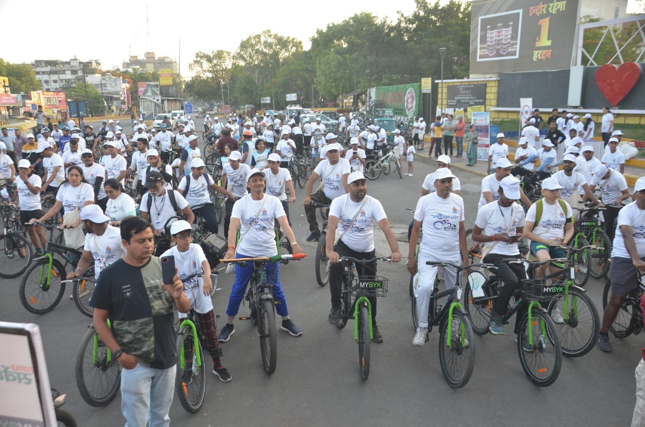 Indore News : देश के सबसे स्वच्छ शहर इंदौर में आज सुबह झोलाछाप इंदौरी साइक्लोथॉन का आयोजन किया गया। जिसमें नागरिकों ने प्लास्टिक मुक्त शहर का संदेश दिया गया। जिसमें 500 से अधिक लोगों ने पंजीयन कराया और साइकिलिंग की। स्वच्छता का आसमान छूने के उद्देश्य नागरिकों की अधिक-से-अधिक सहभागिता को दृष्टिगत रखते हुए आज सुबह 6 बजे सेल्फी प्वाइंट पलासिया चौराहा से निगमायुक्त हर्षिका सिंह एवं स्वास्थ्य प्रभारी अश्विनी शुक्ल द्वारा इसको हरी झंडी दिखाकर शुभारंभ किया गया।