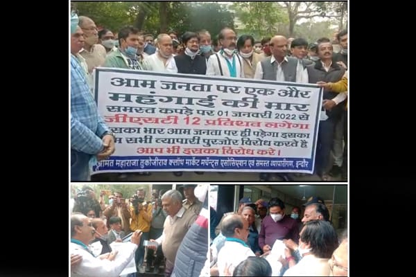 दरअसल, अभी हाल में भारत सर्कार कपड़ें पर gst की दरों को 5 % से बढ़ा दिया था। सरकार द्वारा बढ़ाई गयी जीएसटी दरों के खिलाफ इंदौर में लगातार कपड़ा व्यापारी एसोसिएशन द्वारा आवाज़ बुलंद की जा रही है। इसी कड़ी में व्यापारियों ने कमिश्नर कार्यालय पहुंचकर सरकार के खिलाफ ज्ञापन सौंपा, साथ ही मांग रखी है कि कपडे पर जो 12% जीएसटी बढ़ाया गया है। उसे वापस लेकर 5% जीएसटी कर दिया जाए। अगर सरकार ने टैक्स को कम नहीं किया तो इसका भार सीधा आम जनता पर पड़ेगा।