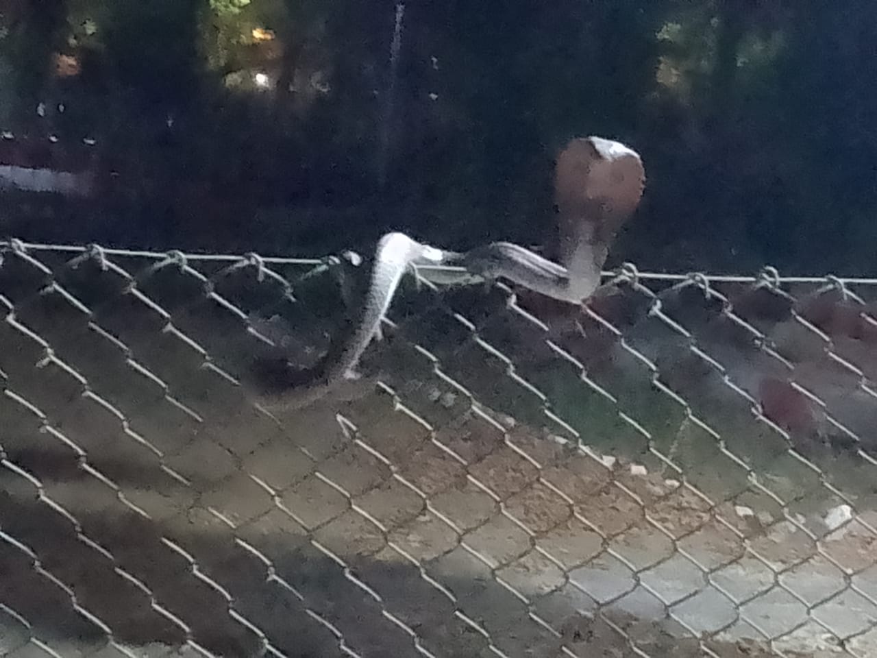 बीते कुछ दिनों से लगातार कोबरा नाग इंजीनियरिंग कॉलेज में देखा जा रहा है, जिसके बाद से छात्रों में डर का माहौल बना हुआ है, कोबरा नाग के द्वारा इंजीनियर कॉलेज में डेरा जमाने को लेकर अब प्रबंधन भी सख्ते में आ गया है, लिहाजा नाग को पकड़ने के लिए विशेषज्ञ से कॉलेज प्रबंधन संपर्क कर रहा है, एक बार फिर शनिवार की रात को कोबरा नाग कॉलेज परिसर की रेलिंग में लटकता हुआ नजर आया।