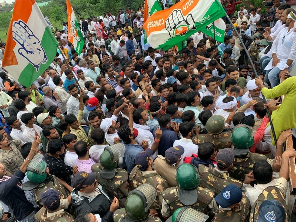 कांग्रेस के इस प्रदर्शन को देखते हुए प्रशासन ने कलेक्टर कार्यालय परिसर के गेट पर भारी संख्या में पुलिसबल तैनात कर दिए। पूर्व ऊर्जा मंत्री प्रियव्रत सिंह, कांग्रेस जिलाध्यक्ष प्रकाश पुरोहित, राजगढ़ विधायक बापू सिंह तंवर, ब्यावरा विधायक रामचन्द्र दांगी के साथ सैकड़ो कांग्रेसियों ने खिलचीपुर नाके से रैली निकालते हुए कलेक्टर कार्यालय पहुंचे। और वहां जमकर हंगामा करते हुए विरोध प्रदर्शन किया। कलेक्टर के मौजूद ना होने पर कांग्रेसियों ने नाराजगी जताई और कहा कि हमारे आंदोलन की सूचना कलेक्टर को पूर्व से दी गई थी और उन्हें गायों की दुर्दशा को लेकर ज्ञापन सौंपा जाना था। जिससे नाराज होकर पूर्व ऊर्जा मंत्री, कलेक्टर कार्यालय के बाहर धरने पर बैठ गये ।