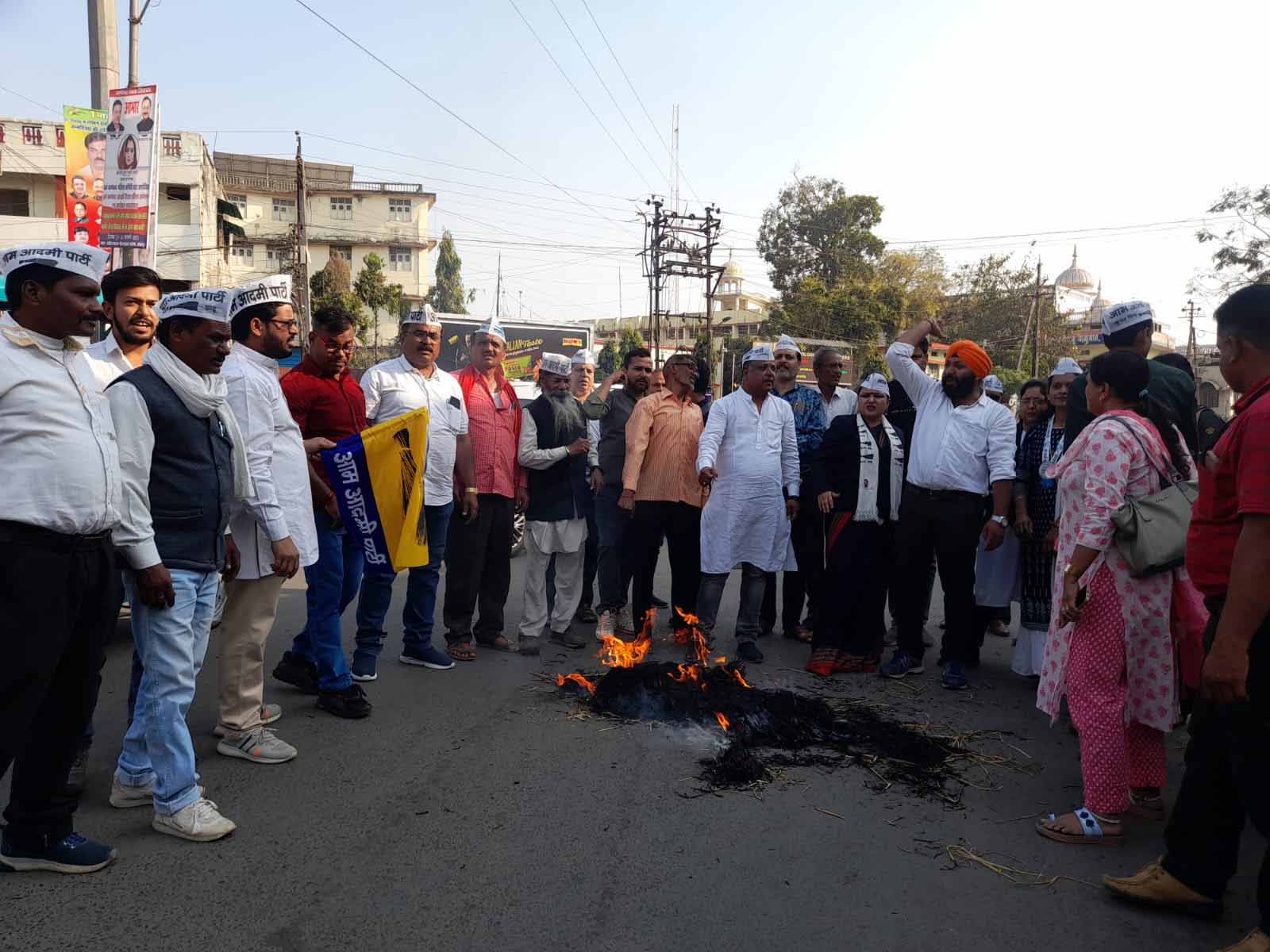 Jabalpur AAP Protest News : दिल्ली सरकार के डिप्टी सीएम और आम आदमी पार्टी के कद्दावर नेता की गिरफ्तारी को लेकर आज आम आदमी पार्टी के कार्यकर्ताओं का जबलपुर में गुस्सा फूट पड़ा। जबलपुर के मालवीय चौक में आम आदमी पार्टी के कार्यकर्ता इकट्ठा होकर केंद्र सरकार पुतला फूंका और जमकर नारेबाजी की।