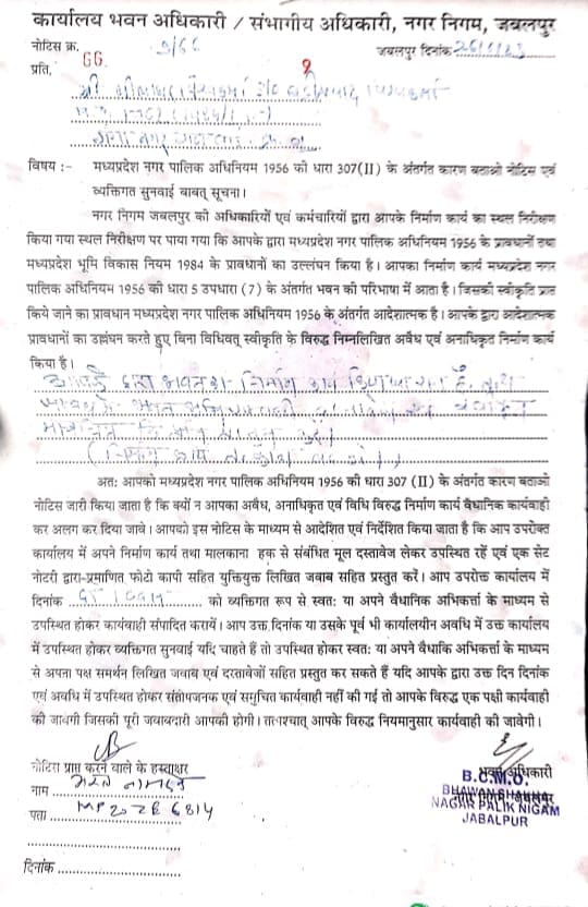 नगर निगम ने भेजा नोटिस, दो दिन में मांगे मकान के दस्तावेज