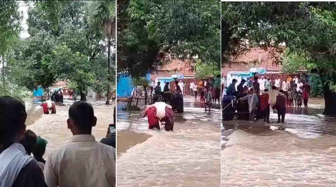 बता दें कि जबलपुर जिले के चरगवां गांव के रहने बाले मोहन पटेल नाम के युवक की बारात 28 जून को नरसिंहपुर के नोन पिपरिया गांव के लिए गई हुई थी। बारिश के चलते उस गांव का मुख्य मार्ग से संपर्क टूट गया। लेकिन खतरों के बीच बारात और दूल्हे को दुल्हन के घर समय पर पहुंचना था नहीं तो विवाह का शुभ मुहूर्त निकल जाता फिर क्या गांव लोगों ने एक देसी जुगाड़ निकाला। पुलिया के दोनो तरफ ट्रैक्टर की मदद से एक मोटी रस्सी को बांधा ओर तेज बहाव होने के बावजूद भी बरातियों और दूल्हे को दुल्हन के घर पहुंचने के लिए दूल्हे को कंधे में उठाया और रस्सी को पकड़कर नदी पार करा दी।