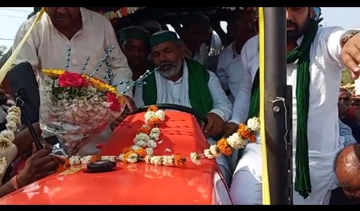 भारतीय किसान यूनियन के राष्ट्रीय प्रवक्ता राकेश टिकैत सिहोरा कृषि उपज मंडी में आयोजित आम सभा में ट्रेक्टर से पहुंचे। इस दौरान उनके साथ यूनियन के अन्य नेता भी शामिल थे राकेश टिकैत की रैली में किसानों में गजब का उत्साह देखने को मिला,आमसभा में हजारों की तादात में किसान राकेश टिकैत को सुनने पहुंचे।