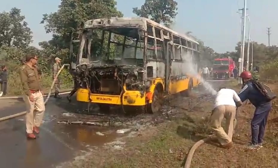मौके पर पहुंचे दमकलकर्मियों ने बस में लगी आग बुझाई। मिली जानकारी के अनुसार, रविवार होने के कारण सभी लोग पिकनिक मनाने डुमना नेचर पार्क जा रहे थे। बता दें कि बस में करीब 30 स्कूली बच्चे और टीचर सवार थे। बताया जा रहा है कि हादसा शॉर्ट सर्किट होने के कारण हुआ है और जैसे ही बस में धुंआ उठा तब ड्राइवर ने अपनी सूझबूझ से सभी को बस से बाहर सुरक्षित बाहर निकाला।