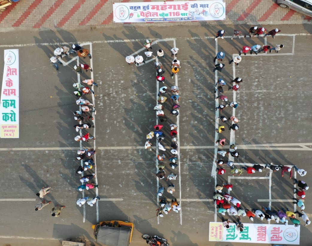 जबलपुर ,संदीप कुमार। जबलपुर (Jabalpur) में आज युवा कांग्रेस (Youth Congress) द्वारा देश में लगातार बढ़ रहे पेट्रोल (petrol) और डीजल (diesel) के दामों को लेकर विरोध करने के लिए अनूठा तरीका अपनाया गया। जहां युवा कांग्रेस ने पेट्रोल के मूल्य 116/- की एक मानव आकृति बनाई और प्रदेश सरकार से दाम कम करने की मांग की।