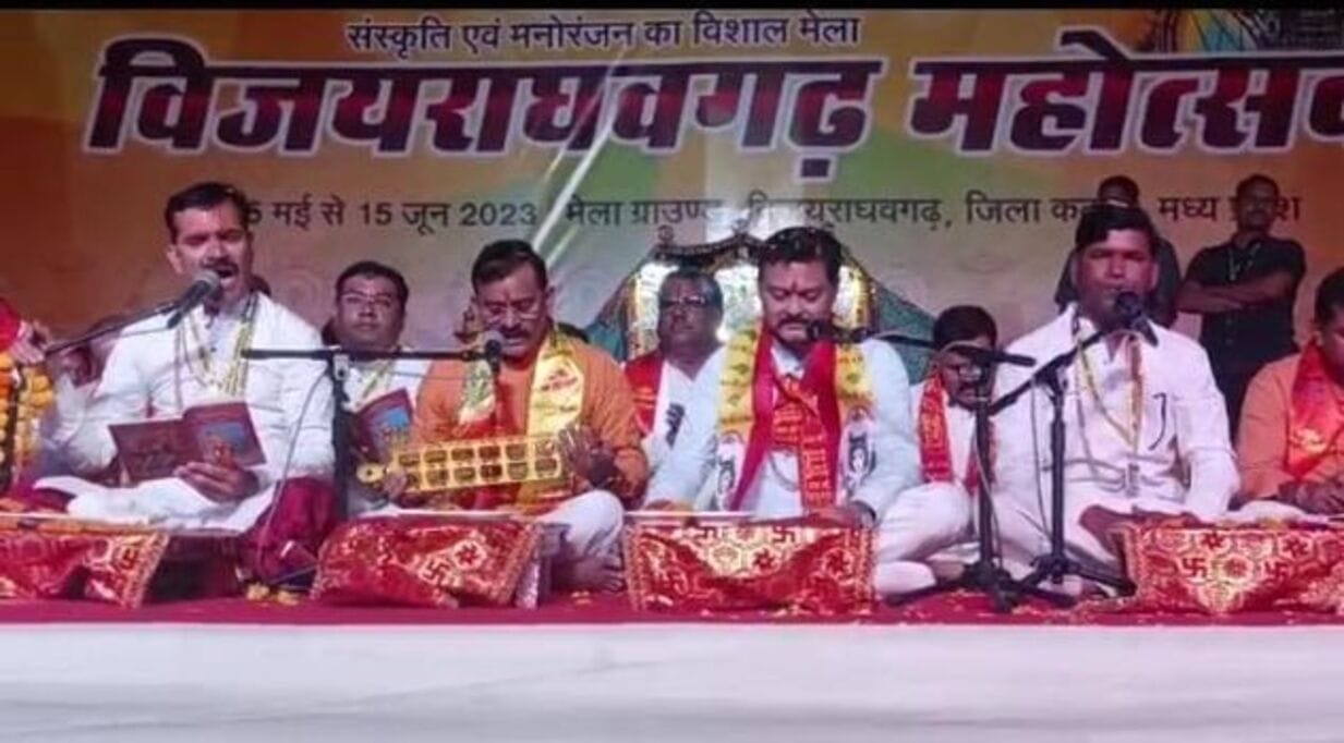 Katni News: “विजयराघवगढ़ महोत्सव” का भव्य शुभारंभ हो चुका है। इस मेले को समृद्ध सभ्यता और संस्कृति का प्रतीक माना जाता है। मेले के शुभारंभ में खुजराहों के सांसद वीडी शर्मा ने पहुंचे। वह हनुमान चालीसा और सुंदर काण्ड के कुछ दोहे का पाठ करते नजर आए। उनके साथ विजयराघवगढ़ के विधायक संजय सतेंद्र पाठक भी सुंदर काण्ड का पाठ करते हुए मंच पर दिखाई दिए।