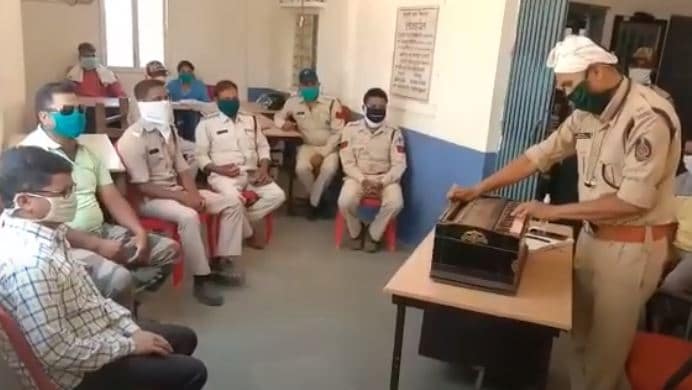 मध्य-प्रदेश (madhypradesh )के खरगोन(khargone) जिले में कोरोना महामारी से दिनभर जूझते थके हारे आने वाले जवानों में नई ऊर्जा का संचार और मनोबल बढ़ाने के लिए डीएसपी(dsp) हारमोनियम(Harmonium) बजाकर सुनाते हैं गीत-संगीत। देश भक्ति गीतों (Patriotic songs)की धुन तो कभी भजन बजाकर बढ़ा रहे जवानों का मनोबल। रोजाना शाम के समय सोशल डिस्टेंसिंग का पालन करते हुए थाने में गूंजता है संगीत।