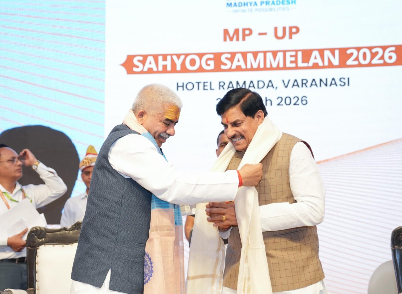 वाराणसी में 31 मार्च 2026 को मध्यप्रदेश और उत्तर प्रदेश सहयोग सम्मेलन आयोजित हुआ। इस सम्मेलन में मध्यप्रदेश के मुख्यमंत्री डॉ. मोहन यादव और उत्तर प्रदेश के मंत्रियों तथा वरिष्ठ अधिकारियों ने हिस्सा लिया। यहां काशी विश्वनाथ मंदिर ट्रस्ट और महाकालेश्वर मंदिर ट्रस्ट के बीच एक समझौता ज्ञापन (एमओयू) पर हस्ताक्षर हुए, जो दोनों राज्यों के धार्मिक पर्यटन को बढ़ावा देगा। इसके साथ ही, एक जिला एक उत्पाद (ओडीओपी) क्षेत्र में सहयोग के लिए भी एक एमओयू हुआ। मुख्यमंत्री डॉ. यादव ने मध्यप्रदेश को औद्योगिक विकास के लिए असीमित निवेश संभावनाओं वाला राज्य बताया, जहां से 70 हजार करोड़ रुपए से अधिक का निर्यात हो रहा है।