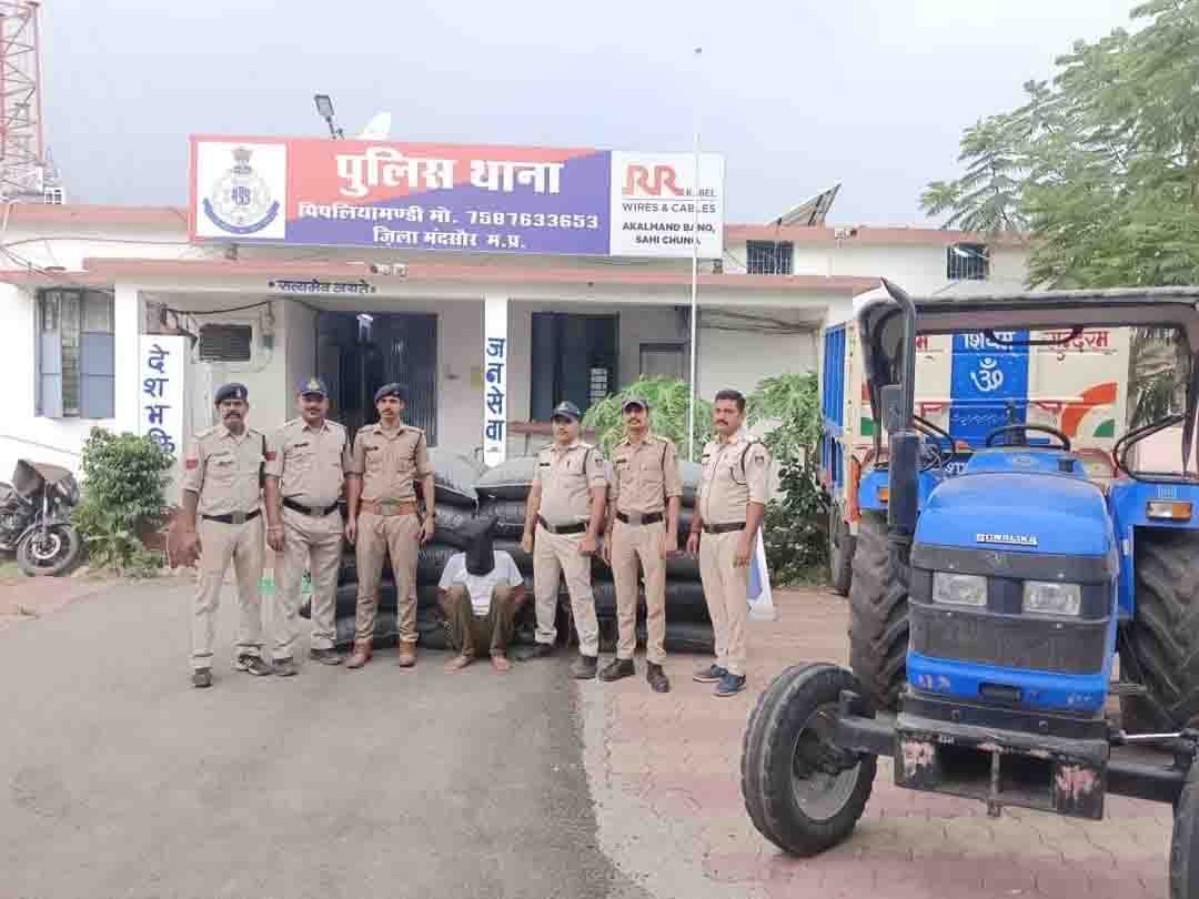 पिपलियामंडी पुलिस ने मिली जानकारी के अनुसार, पुलिस को मुखबिर से सूचना मिली थी कि थाना क्षेत्र में ट्रैक्टर-ट्रॉली में अवैध रूप से डोडा चूरा की तस्करी की जाने वाली है। तुरंत नाकाबंदी की जाए तो आरोपी गिरफ्त में आ सकता है। मुखबिर से मिली सूचना के आधार पर पुलिस ने बालाजी मंदिर के पास लुनाहेडा फंटा पर नाकाबंदी करते हुए मुखबिर द्वारा बताए गए हुलिए वाले ट्रैक्टर-ट्रॉली को रोककर तलाशी ली तो ट्रॉली में भरी गेहूं की 18 बोरियों के बीच 25 प्लास्टिक के कट्टों में भरा अवैध मादक पदार्थ डोडाचूरा बरामद किया गया।