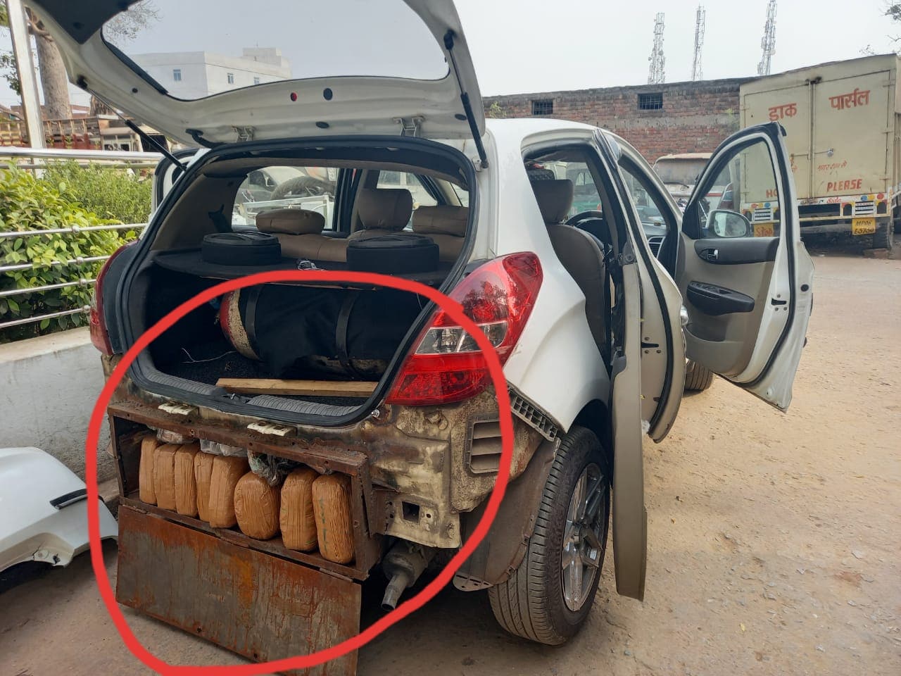 सिविल लाइन थाना पुलिस ने कार सहित गाँजा जप्त कर मामला दर्ज किया है। जानकारी के अनुसार कार क्रमांक Dl8c 4294 को पुलिस ने छोदा टोल टैक्स पर घेराबंदी कर पकड़ लिया। तलाशी लेने पर कार के साइड गेट की बॉडी और पीछे अलग से लोहे के केबिन बनाकर उसमे गाँजा रखा मिला था। पुलिस ने कार में सवार आरोपी महेश ,सलमान ,प्रवीण निवासी हैदराबाद आंध्र प्रदेश को गिरफ्तार किया है। आरोपियों ने पूछताछ में बताया कि वे तीनों गांजा लेकर हैदराबाद से दिल्ली ले जा रहे थे।