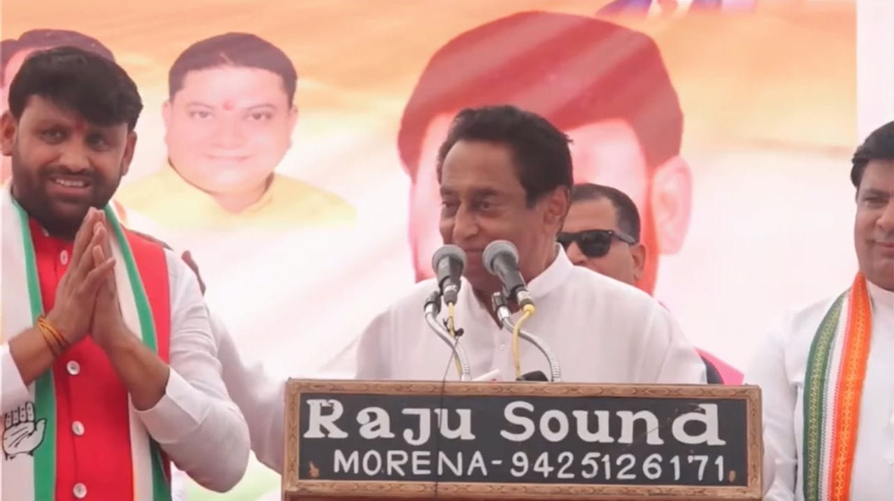MP Election 2023/Kamal Nath in Dimani : कमलनाथ ने मुरैना के दिमनी में जनसभा को संबोधित करते हुए कहा कि कांग्रेस के प्रत्याशी रविंद्र तोमर उनके प्रतिनिधि होंगे और इस क्षेत्र की जिम्मेदारी उनकी होगी। उन्होने कहा कि मैं राजा नहीं हूं महाराजा नहीं हूं मैं मामा नहीं हूं केंद्र का मंत्री नहीं हूं..मैं आपका भाई हूं। पूर्व मुख्यमंत्री ने कहा कि हर चुनाव के अपने मायने होते हैं और इस बार का चुनाव मध्य प्रदेश का भविष्य तय करेगा। इस मौके पर सीएम शिवराज सिंह चौहान पर झूठ बोलकर जनता को गुमराह करने का आरोप लगाया।