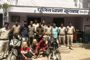 मुरैना, संजय दीक्षित। नूराबाद थाना क्षेत्र (Noorabad police station area) के सांक नदी पर 29 मार्च को ग्वालियर के बारदाना व्यापारी के साथ हुई लूट का पुलिस ने मंगलवार को खुलासा कर दिया। इस लूट कांड में मुरैना का एक बारदाना व्यापारी शामिल था, जिसने अपने साथियों के साथ मिलकर लूट की घटना को अंजाम दिया था। पुलिस ने आरोपी व्यापारी व उसके दो साथियों को गिरफ्तार कर उनसे लूटे गए तीन लाख रुपये व लूट में प्रयुक्त बाइक व एक स्कूटी को बरामद कर लिया है। इस लूट में शामिल अभी दो आारोपित फरार है। जिनके पास बाकी की रकम बताई जा रही है।