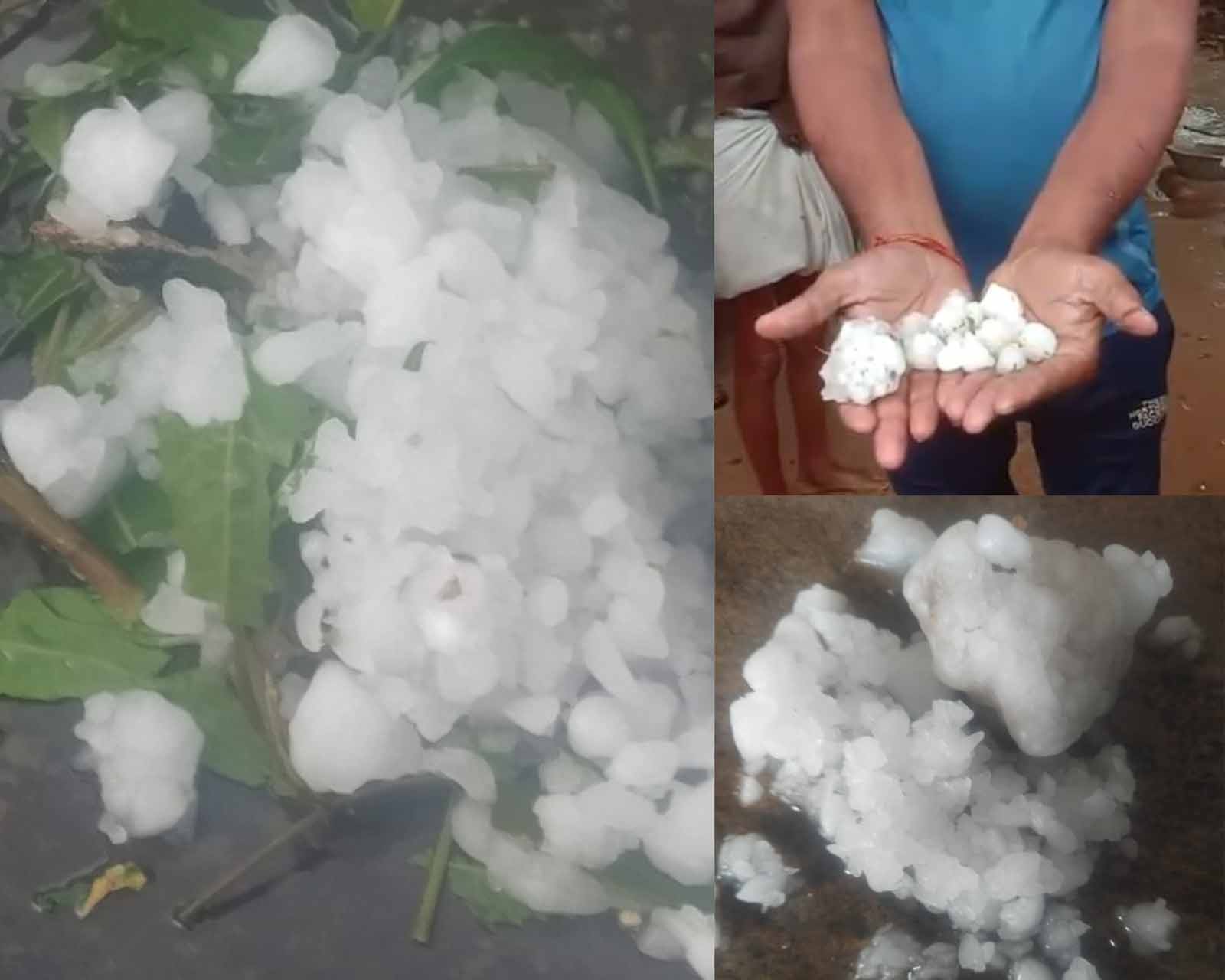 किसानों का कहना है कि इससे घर, आंगन और खेत में कटी रखी फसल पूरी तरह खराब हो गई। वहीं पशुओं को खिलाने वाला भूसा भी गीला हो गया। ओले गिरने का क्रम करीब 15 मिनट तक चला। यहां बोर के आकार के ओले गिरे है।