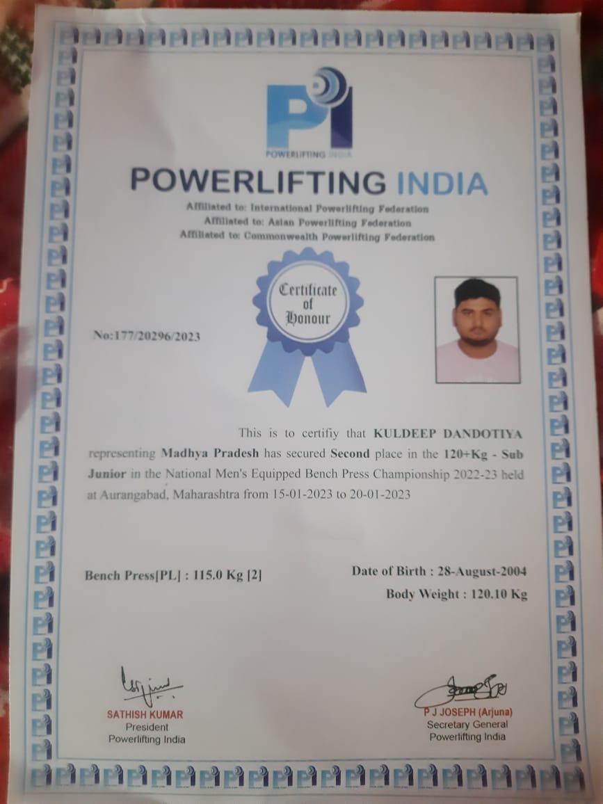 सबसे बड़ी बात ये है कि पिछले साल भी कुलदीप का वर्ल्ड पावर लिफ्टिंग चैंपियनशिप में सिलेक्शन हो गया था लेकिन उसका रोड एक्सीडेंट हो गया था जिसके चलते वो चैम्पियनशिप में हिस्सा नहीं ले पाया था, उसने एक्सीडेंट से उबर कर एक साल कड़ी मेहनत की और एक बार फिर चैम्पियनशिप में जगह बनाई है, एमपी ब्रेकिंग न्यूज़ परिवार कुलदीप को अग्रिम बधाई और शुभकामनायें देता है।
