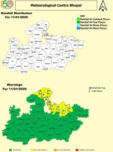 - ग्वालियर में 5 डिग्री, भोपाल में 8 डिग्री, इंदौर में 9.4 डिग्री, उज्जैन में 8.3 डिग्री और जबलपुर में 8.4 डिग्री सेल्सियस न्यूनतम तापमान रिकॉर्ड किया गया।