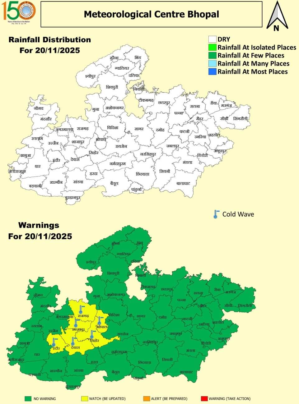 भोपाल, इंदौर, देवास, सीहोर, शाजापुर और राजगढ़ में शीतलहर की स्थिति बनी रहेगी।