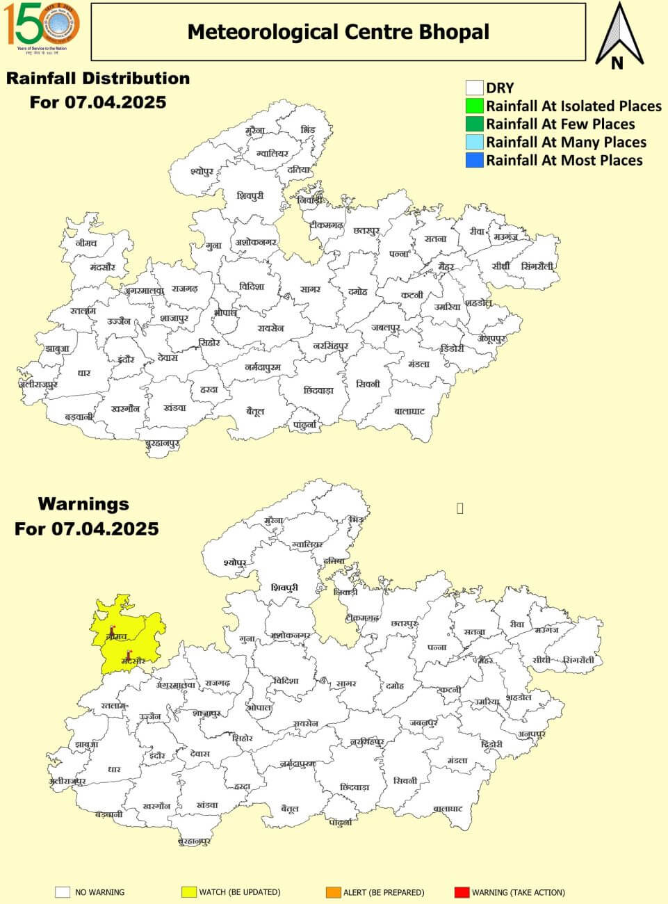 - आज 7 अप्रैल को सोमवार को नीमच, मंदसौर, भिंड, मुरैना, श्योपुर, रतलाम और मंगलवार को ग्वालियर, चंबल, रतलाम, राजगढ़